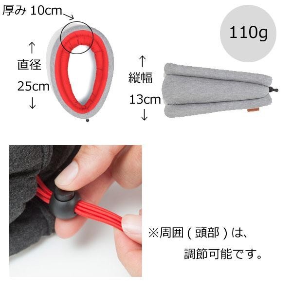 オリジナルよりも軽量化されて、スタイリッシュな形状です。ネックウォーマーのように首の回りに装着して持ち運ぶこともでき、中央部分に紐がついているので、サイズ調節を自由にできます。 |