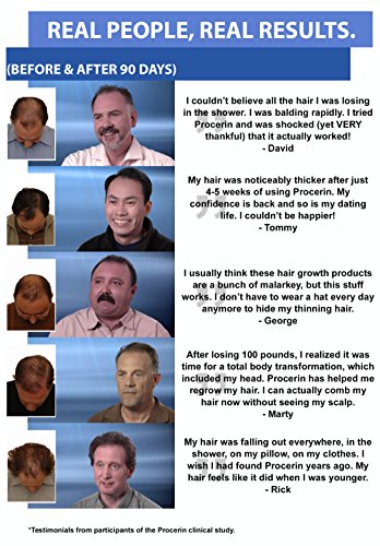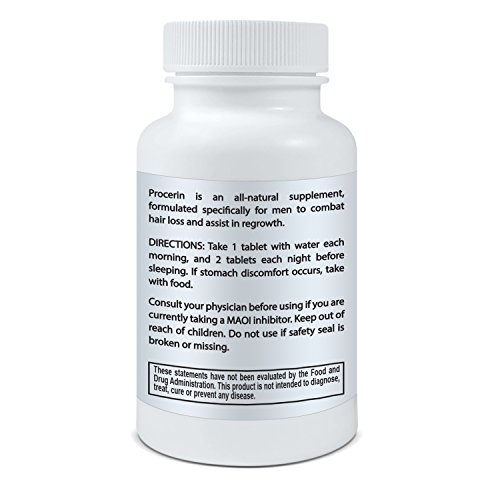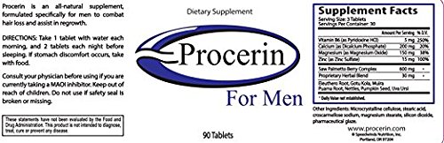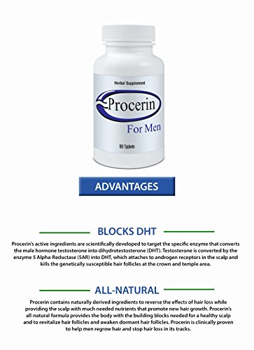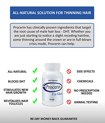 Studio : Procerin Publisher : Procerin Binding : Health and Beauty Product Description Procerin comes in a convenient tablet form and topical solution that are used daily for the treatment of male hair loss. Procerin is an all-natural supplement available without a prescription. While there are several causes of hair loss, Procerin is effective in reversing hair loss in men caused by androgenetic alopecia, the most common cause of male hair loss. Androgenetic alopecia results in thinning hair and the familiar receding hairline (or widow's peak). 0