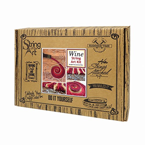Materials: The DIY Kit's 16″ by 12″ wood board is hand sanded and hand stained chestnut. Every kit includes only the highest quality embroidery floss. And there is plenty of extra string necessary to complete your crafts project. The instructions give a step-by-step description of how to recreate the Pouring Wine String Art pattern you see in the photos. The crafting kit also includes a pattern template.