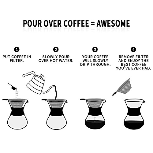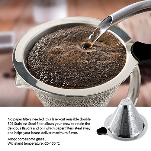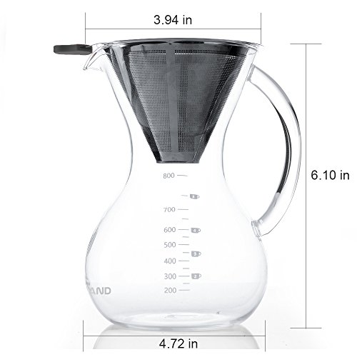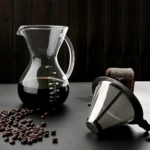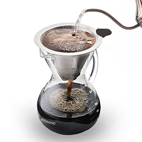 -. Brand : RioRand -. Color : Clear -. EAN : 0637012220685 -. Feature : Reusable Stainless Steel Filter Design - Paper filter is out-dated, replace with reusable laser-cut stainless steel filter instead, saving your money and time, easy to operate and clean / Coffee Maker Material - Beautifully crafted by transparent borosilicate glass to last a lifetime,Withstand temperature:-20-130 ℃ / Large Capacity - 800ml/27 oz 5-6 cup size.Makes an excellent gift for any occasion; birthdays, holidays, housewarming etc / Heat Resistant Handle Design -Handle with hollow round design. Easy, hassle-free pouring. Comfortable to hold / Quality Guaranteed - Create a delicious coffee like a pro, with our detailed instructions and tips. For any defects in the materials or craftsmanship of any RioRand product, please contact our customer service team and we will be glad to assist you -. Label : RioRand -. Manufacturer : RioRand -. Model : RR-800ML -. MPN : RR-800ML -. PackageQuantity : 1 -. PartNumber : RR-800ML -. ProductGroup : Kitchen -. ProductTypeName : KITCHEN -. Publisher : RioRand -. Studio : RioRand -. Title : Pour Over Coffee Maker Reusable Stainless Steel Mesh Glass Filter Coffee Dripper with Coffee Scoop set (800ml/5-6 Cup) -. UPC : 637012220685