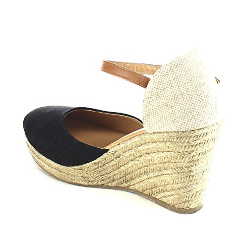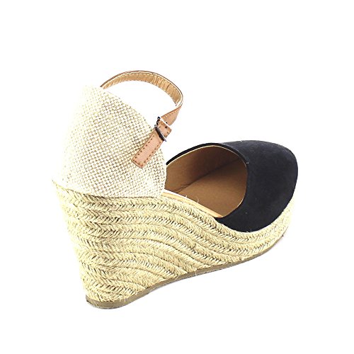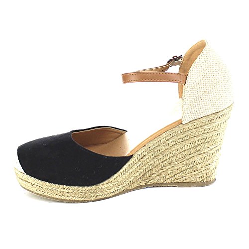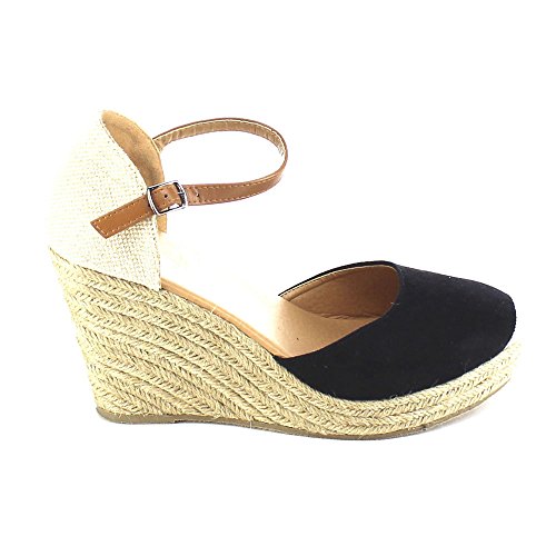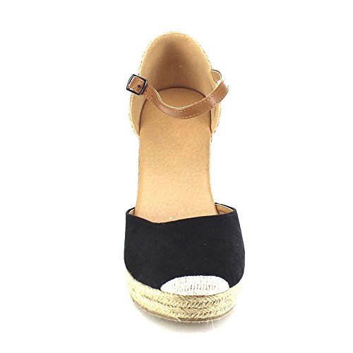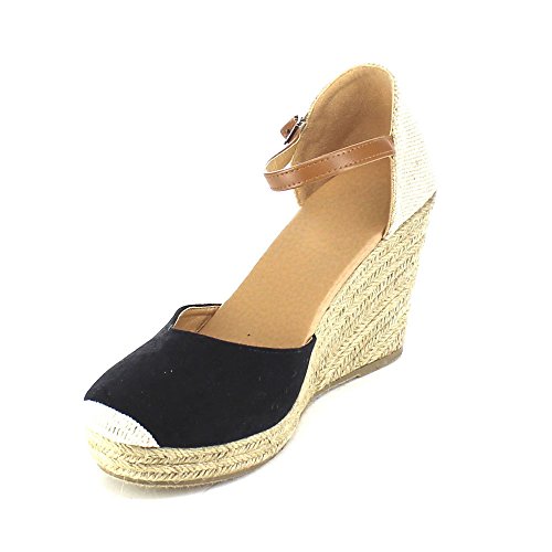 Beston AB01 Women's Espadrille Platform Wedge Sandals(Tight Front Toe), Color:BLACK, Size:8.5