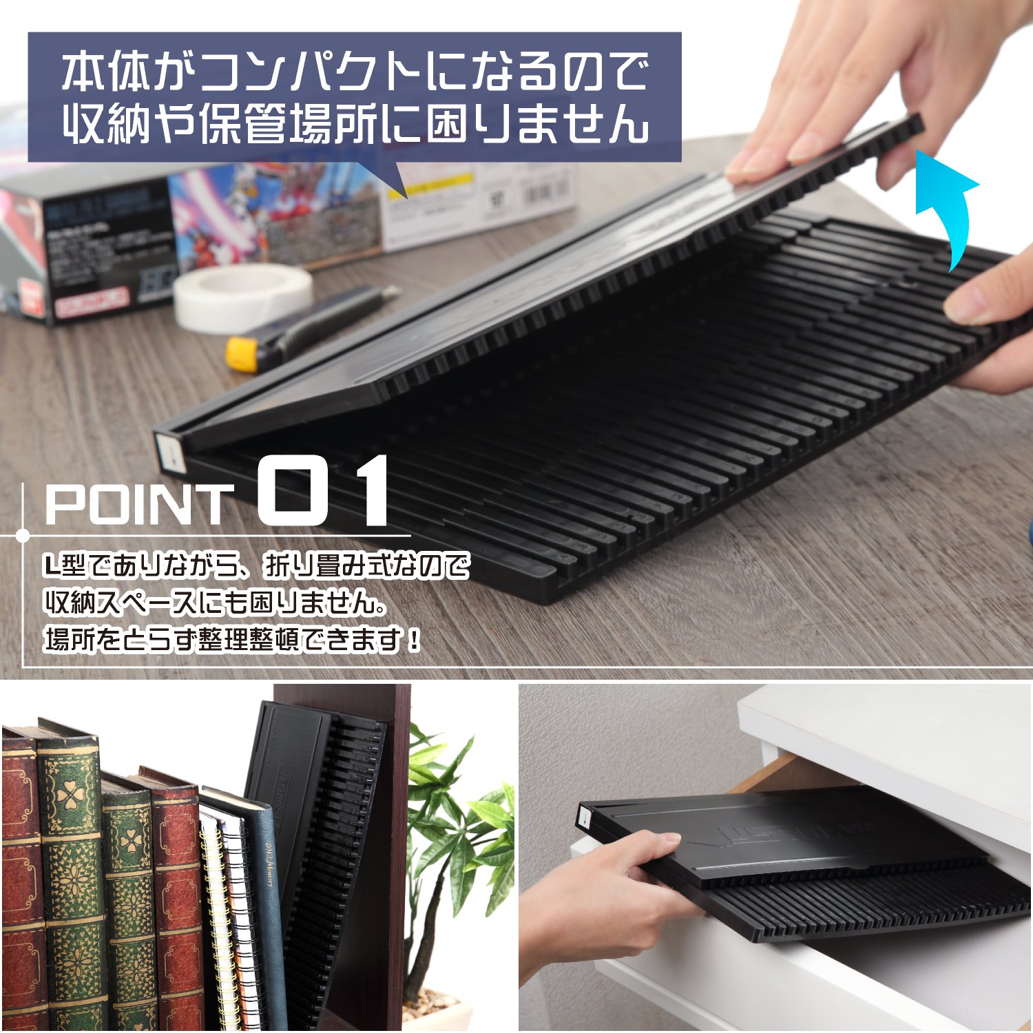 It is an L type folding type parts stand which is convenient for runner storage and arrangement.