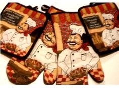 4 piece Kitchen Set Italian Chef 2 Potholders & 2 Oven Mitts Set