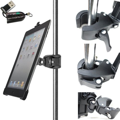 -. Title : ChargerCity Dedicated 360° Swivel Adjustment Apple ipad 2 3 or 4 Retina Holder with 1/4"-20 Connection with Dual Joint Multi Adjustable Bar/Pole Clamp Mount for Tripod MonoPod Music Mic Microphone Stand, Golf Cart, Stroller (Include Free ChargerCity Micro SD Memory Card Reader)