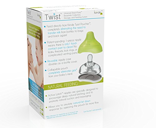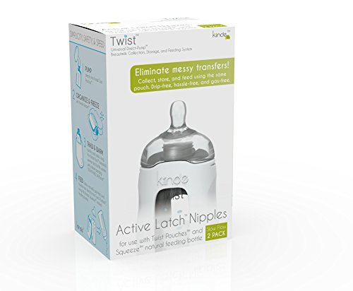 -. Feature : Active Latch nipples are designed to teach and reward deep, wide, natural latching. By requiring suction AND massaging of the nipple, they are designed to discourage "lazy latching", and to ease the transition between bottle and breast. / Patent-pending 1-piece nipple means there is only 1 food-contact part to clean! No leaks, threads, lock rings, or complicated venting parts. / Active LatchTM nipples pop directly into Twist Pouches (sold separately), eliminating the need to transfer milk from bags to bottles and back again. / Feed directly from Kiinde Twist PouchesTM (sold separately)! Transfer-free, gas-free, and leak-free. Each nipple includes a rigid storage case that protects nipples during transport and keeps them clean. The tops of the cases also double as bottle covers for the Kiinde SqueezeTM natural feeding bottle. / Feeding from Twist Pouches can completely eliminate gas from your baby's meal. The pouch collapses as your baby drinks - eliminating air, and eliminating the need for complicated venting parts.