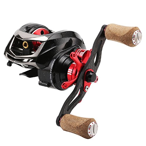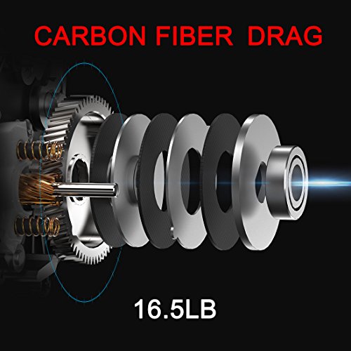 -. Feature : POWER: 4 disks carbon fiber drag system provide 16.5Lbs (7.5kg) powerful drag. / SPEED: 6.4:1/7.2:1 Gear ratio, hardened aero-grade aluminum alloy gears give you smooth and fast rolling feeling. / SMOOTHNESS: Precision gear, ultimate processed 13 ball bearings and 1 rolling bearing provide excellent smooth performance. / WEIGHT: C45 Carbon fiber frame, side plate, handle and polyporous designed aluminum alloy spool create extremely light weight 6ozs (168g). / DUAL BRAKE: dynamic 7 leavels centrifulgal and 10 leavels magnetic brakes provide accurate and consistent brake pressure throughout the cast.