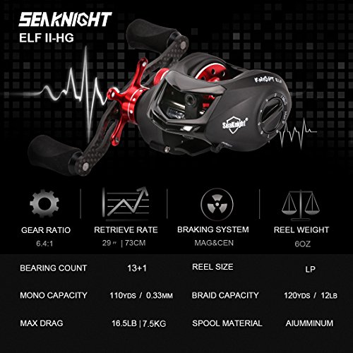 -. Title : SeaKnight ELF II Baitcasting Reel- 6oz Super Light, C45 Carbon Fiber Frame, Dual Magnetic and Centrifugal Brake System, 6.4:1/7.2:1 Tournament Fishing Reel
