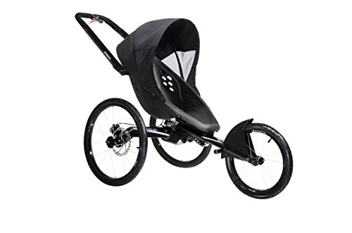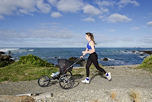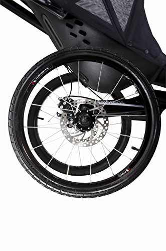 Premium running stroller with 3-wheel design offers maximum control and precision with 20'' rear air-filled wheels & a 16'' air-filled front wheel that reduce roll resistance