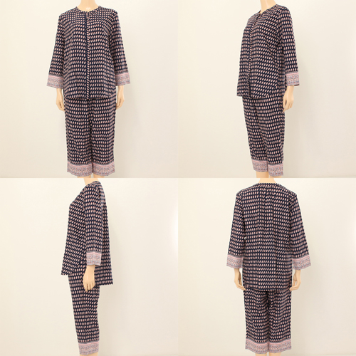 기하학 보더 프린트가 에스닉하면서 트렌디하며 소매,바지단에 포인트로 보더가 있는 파자마.