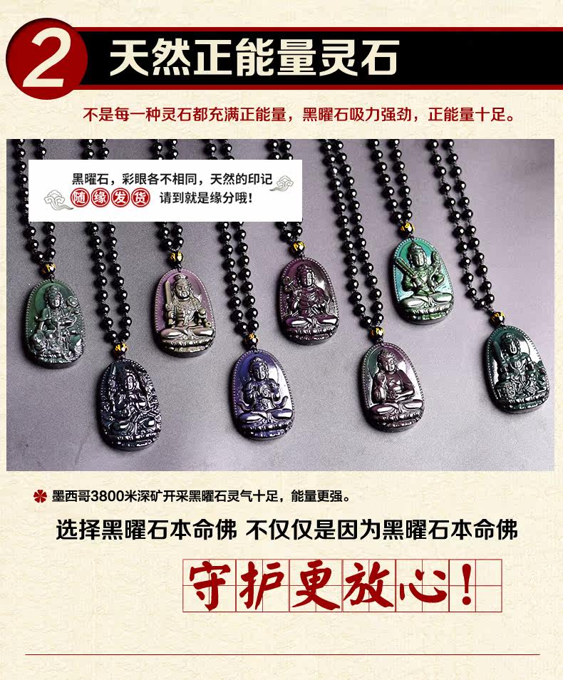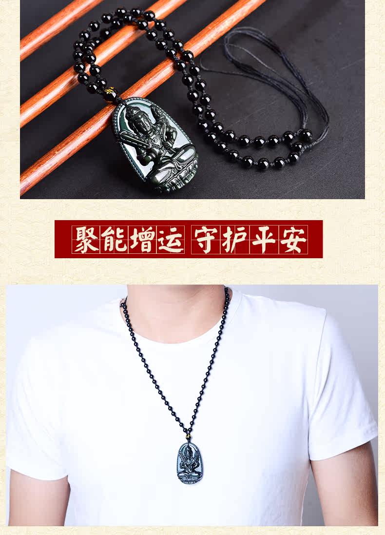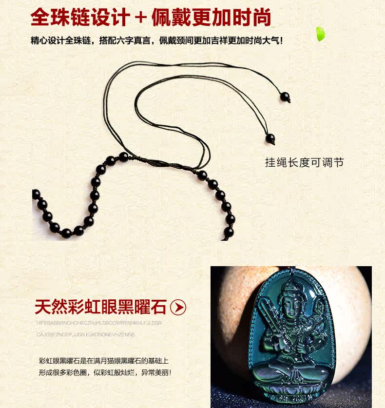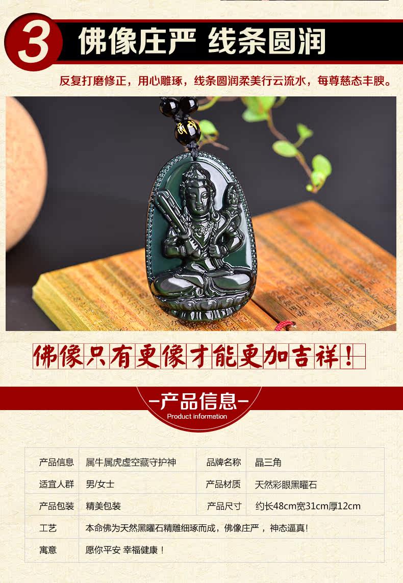 开光天然彩虹眼黑曜石虚空藏菩萨吊坠 生肖牛虎本命佛守护神男女