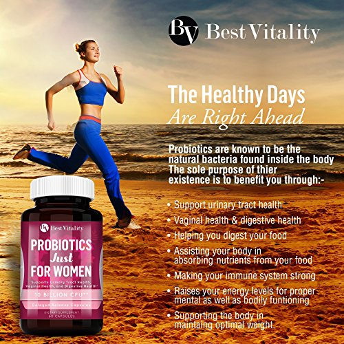 Best Vitality Probiotic for Women is a highly effective, all-natural supplement your gut will love. Our probiotics are specially formulated to promote healthy gut, optimum vaginal health, clear skin, and strong immune system and ease the pain and discomfort of bacterial vaginosis (BV), urinary tract infections (UTIs) or irritable bowel syndrome (IBS), constipation or diarrhea. A daily dose of our probiotic supplement will help improve your skin, your digestive health and increase energy levels allowing you to live a happier, healthier life.