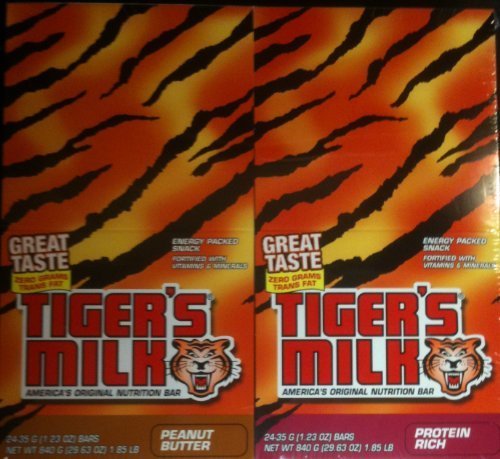 -. Title : Tiger's Milk 24 Ct 1.23 Oz Nutrition Bar. Includes 12 Protein Rich and 12 Peanut Butter Bars.
