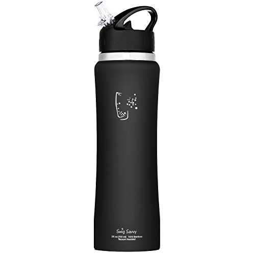 -. Title : Swig Savvy's Stainless Steel Insulated Water Bottle, Wide Mouth 25 Oz Capacity, Double Wall Design, with Straw Cap -Including Water Bottle Pouch