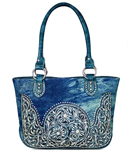 -. Title : Montana West Denim Collection Concealed Handgun 14" x 9" Tote - Denim w/ Blue