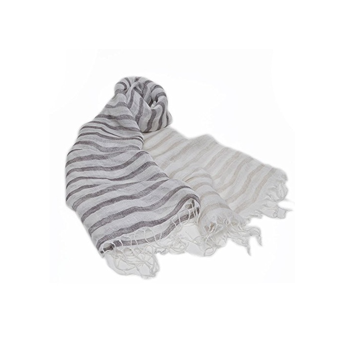 Aness 마혼스톨 스카프 대형 상쾌한 린넨 소재 거즈 그라데이션 컬러 자외선 대책 UV케어 박수 보더 180x64cm #n401 (그레이)