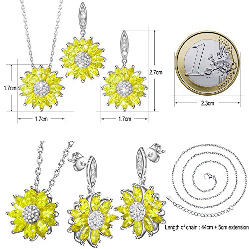 ♦ MATERIAL & SIZE: Metal: White gold plated. Stone: High-quality crystal. Size of pendant: 1.7*1.7cm. Size of earrings: 1.7*2.7cm. Length of chain: 44cm + 5cm extension.