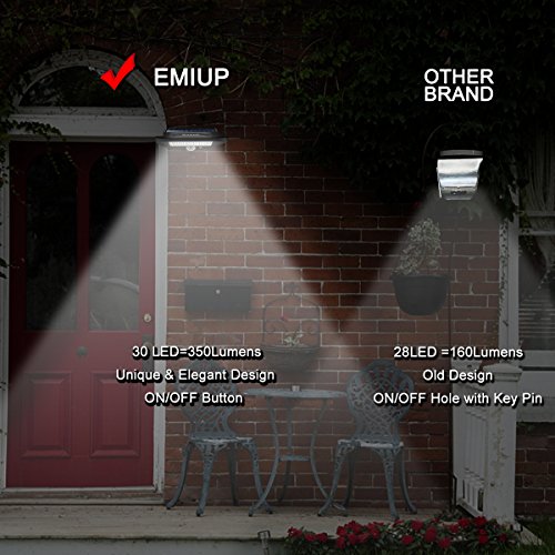 Solar Lights Outdoor, EMIUP Super Bright 30 LED Solar Motion Sensor Security Lights, Waterproof Wireless for Driveway Garden Wall Deck Yard Patio Stairway (30 LED, 1 PACK)