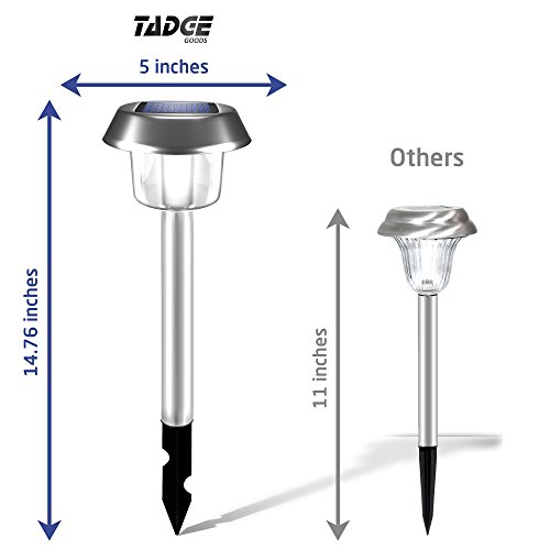 - 100% SATISFACTION GUARANTEE – Tadge Goods Solar Pathway Lights come with a 100% Satisfaction Guarantee. We back our customers and products without fail and are dedicated to address any product/service issues to ensure we deliver a 5-star experience for all our customers