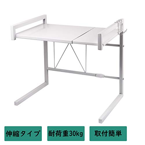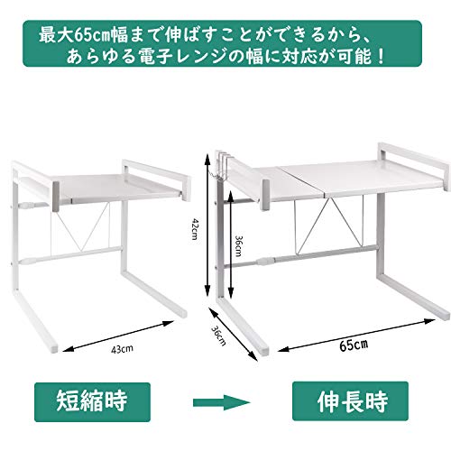 - お使いの電子レンジの幅に合わせて調節できる伸縮式のレンジラックです。