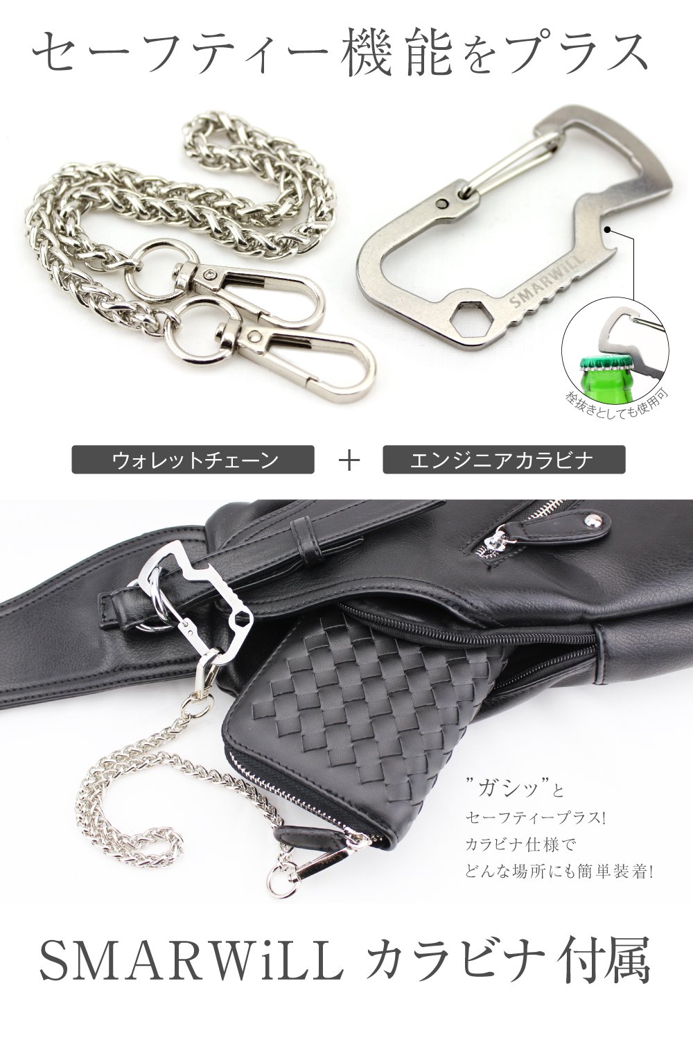 · Wallet chain + engineer carabiner (with a bottle opener function)