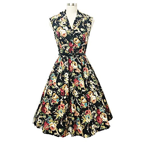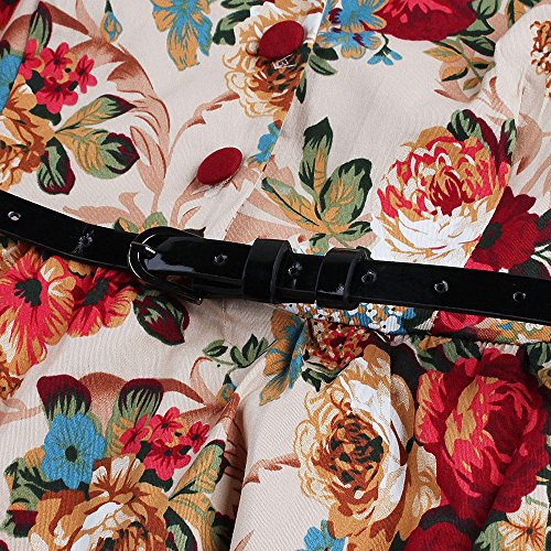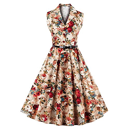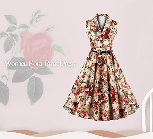 Vintage Lapel Floral Print Belt A-line Women Dress Description: The vintage dresses with floral print and A-line style are essential in every wardrobe, especially when you attend the gatherings and celebrations. The lapel and floral print show the romantic and vintage sense, and wear with a belt to create an A-line and elegant silhouette.