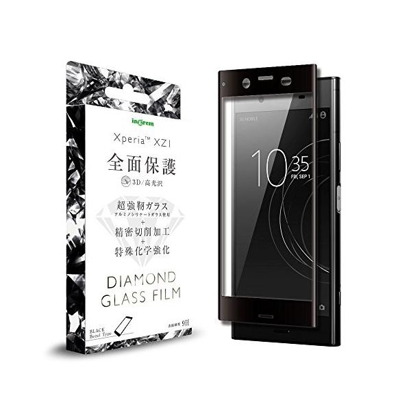 Xperia XZ1 ガラス フィルム 全面保護 耐衝撃 ダイヤモンド ガラスフィルム 光沢 ブラック