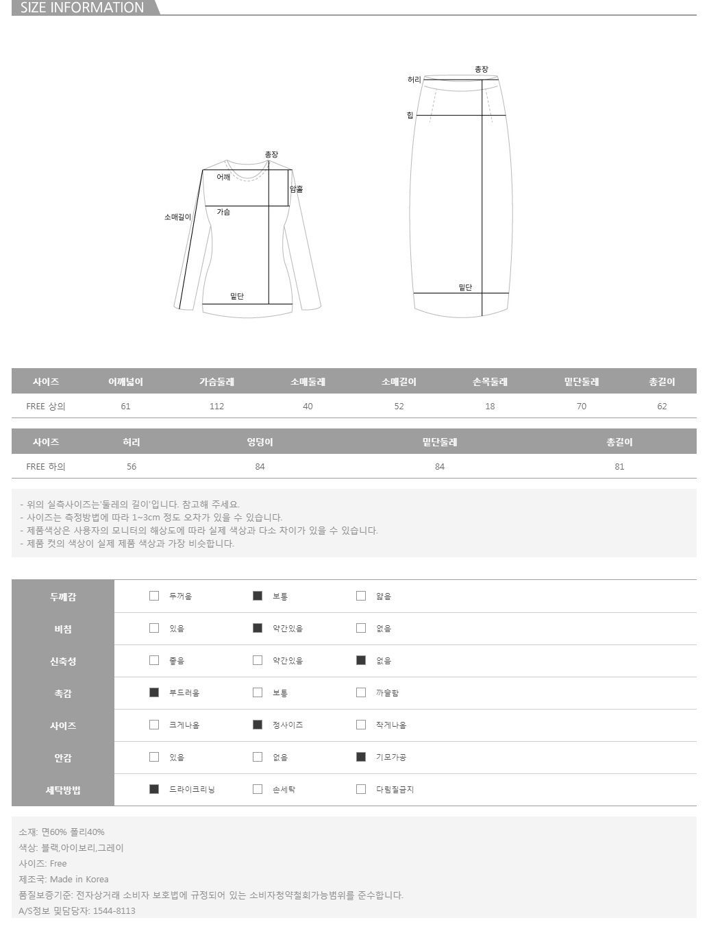 모델의 착용 컬러는 그레이 입니다.