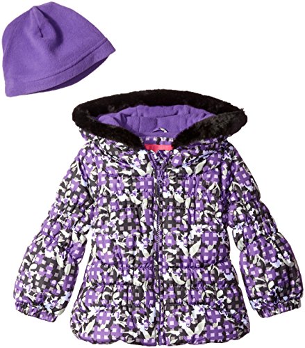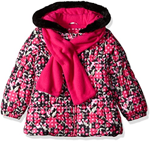 London Fog Little Girls' Toddler Classic Heavyweight Puffer Jacket with Gingham Print, Pink Floral, 4T