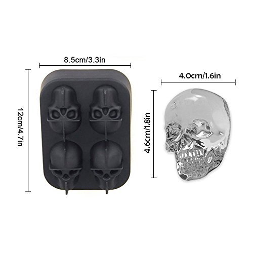 Four giant skull shape ice cubes (1.6" X 1.8") make your drink look awesome. Great for Parties, Bars, Restaurants, Summer, Holiday events and Holiday Gifts.
