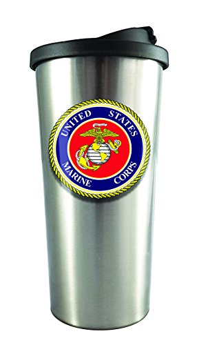 Spoontiques 20830 U.S. Marines Stainless Steel Travel Mug, Silver