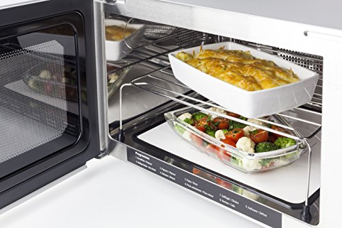 Flacher Keramikboden mit Mikrowellenreflektor: Durch den Wegfall des Glasdrehtellers ist das Garen auf zwei Ebenen moglich, ideal fur eckige Auflaufformen und eine leichte Reinigung