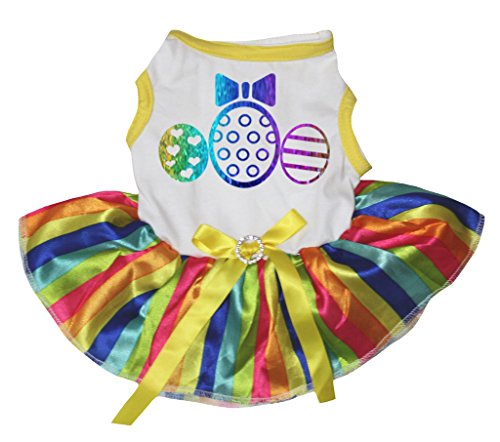 -. Title : Petitebella Puppy Clothes Dog Dress Easter Rainbow Egg White Top Striped Tutu