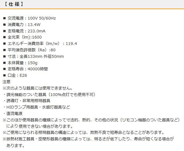 白熱電球100形相当の明るさ。光色は電球色で屋内専用です。密閉形器具、断熱材施工器具にも対応します。