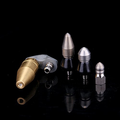 -. Brand : CISNO -. Feature : Sewer Jetter Nozzle Kit: Includes one turbo jetting nozzle and three hardened stainless steel jetting nozzles. This kit is ideal for general sewer jetting and pipe cleaning. Effectively break through pliable obstructions such as grease, sand, mineral deposits and general waste build up. / Turbo Nozzle:1/4" Inlet Plug; 4000 Max PSI; 3.5 GPM; Penetrates obstructions with its pointed head; Drive by (1) one rear jetting for maximum thrust and cut. / Bullet Head Nozzle 1 Front 6 Rear: 1/4" Inlet Female; 4000 Max PSI; 9 GPM; (1) Front and (6) rear facing jets at 15 degrees; Penetrates blockages and makes an initial opening in a blocked line. / Short & Round Nozzle: 1/4" Inlet Plug; 4000 Max PSI; 9 GPM; (1) Front and (6) rear facing jets at 30 degrees; Ideal for general drain cleaning & for making tight turns in traps and elbows. / Bullet Head Nozzle 1 Front 3 Rear: 1/4" Inlet Female; 4000 Max PSI; 5 GPM; (1) Front and (3) rear facing jets at 30 degrees; Ideal for general drain purpose, 30 degree rear jets for cleaning sidewalls efficiently. -. Label : CISNO -. Manufacturer : CISNO -. MPN : HT83AC -. PartNumber : HT83AC -. ProductGroup : Lawn & Patio -. ProductTypeName : OUTDOOR_LIVING -. Publisher : CISNO -. Studio : CISNO -. Title : Sewer Jetter Nozzle Kit Includes One Turbo Jetting & (3) Stainless Steel Nozzles