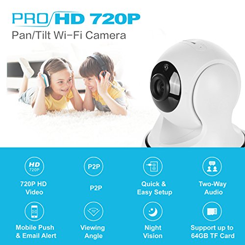 Your World in 720P HD:See everything in beautiful color and super clarity with this HD camera. It helps you keep close eye on your lovely children and pets. All captured by this camera will be presented to you via fluent and stunning videos