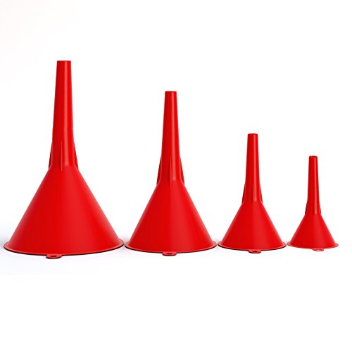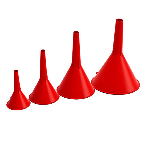 mAuto, Plastic Funnel Set Premium 4 Piece Funnel Set w/ Easy to Pour Spout, Spill Free Set of Funnels, Red