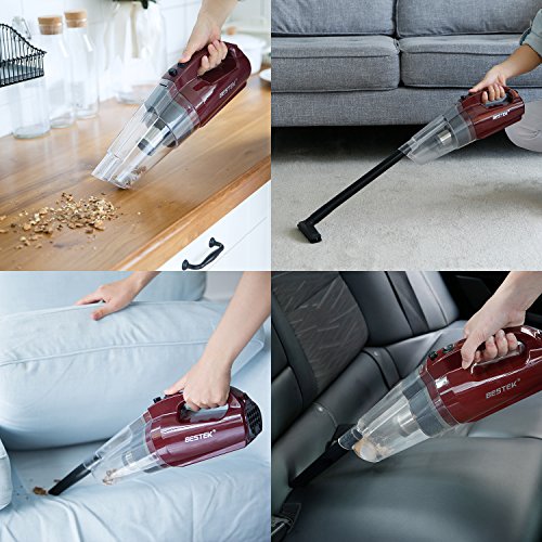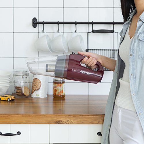 BESTEK Handstaubsauger, kabelloser Staubsauger, leistungsstarker Akkusauger, Autostaubsauger (beutellos, 80W, Lithium-Akku, 30Min. Laufzeit, inkl. Zubehor) Handsauger fur Kuche, Ha