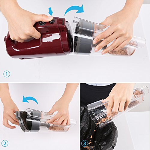 Behalterentleerung und Saugvorgang nur per knopfdruck. Durchsichtiger Auffangbehalter weiss man auf einen Blick, wann den Staubsauger leermachen muss.