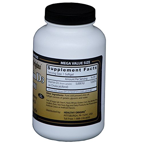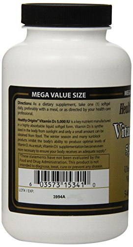 ReleaseDate : 2015-02-15 Studio : Healthy Origins Publisher : Healthy Origins Binding : Health and Beauty Product Description Healthy Origins Vitamin D3 is a key nutrient manufactured in a highly absorbable liquid soft gel form. Vitamin D3 is a fat-soluble vitamin necessary for the proper growth, development and maintenance of bones and teeth. Also, Vitamin D3 plays a key role for calcium and phosphorus utilization in the body. Vitamin D3 is synthesized in the body from sunlight, but several factors such as age, climate, sun block use, weight and skin tone can inhibit the body's ability to produce optimal levels of Vitamin D3. As a result of the aforementioned factors, Vitamin D deficiency is a common medical issue across the world. Prolonged deficiency of Vitamin D may lead to a greater risk of health complications, so it is important to ensure that your body receives an adequate supply. Healthy Origins Vitamin D3 is encapsulated with pure, cold-pressed olive oil for enhanced absorption. 0