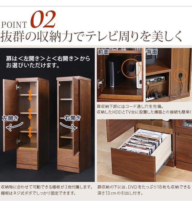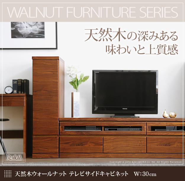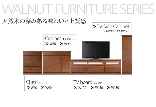 商品について:ウォールナットのキャビネットです。引出しはフルスライドレール付きで開閉らくらく。扉内可動棚板付きで6cm間隔3段階に設置可能。ウォールナットシリーズでトータルコーディネイトができます☆