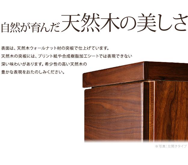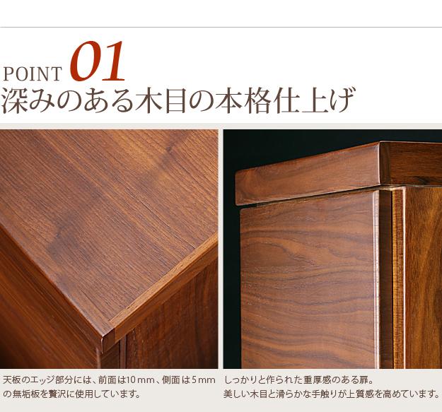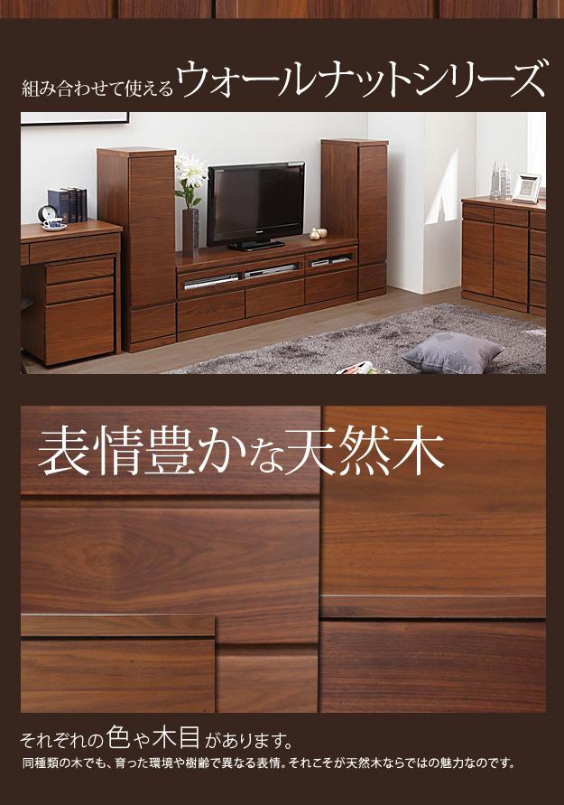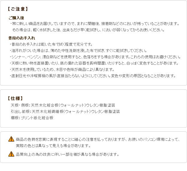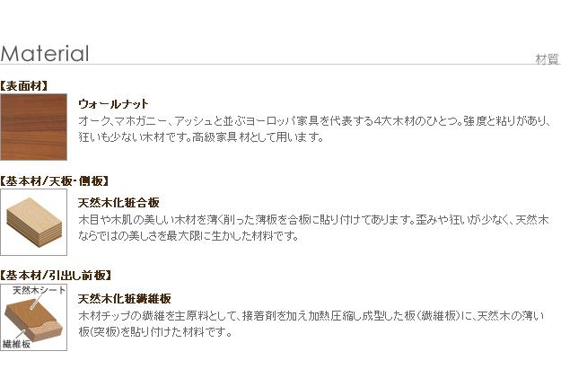 材質:天板・側板-天然木化粧合板(ウォールナット)、引出し前板-天然木化粧繊維板(ウォールナット)、棚板-プリント紙化粧合板、ウレタン樹脂塗装