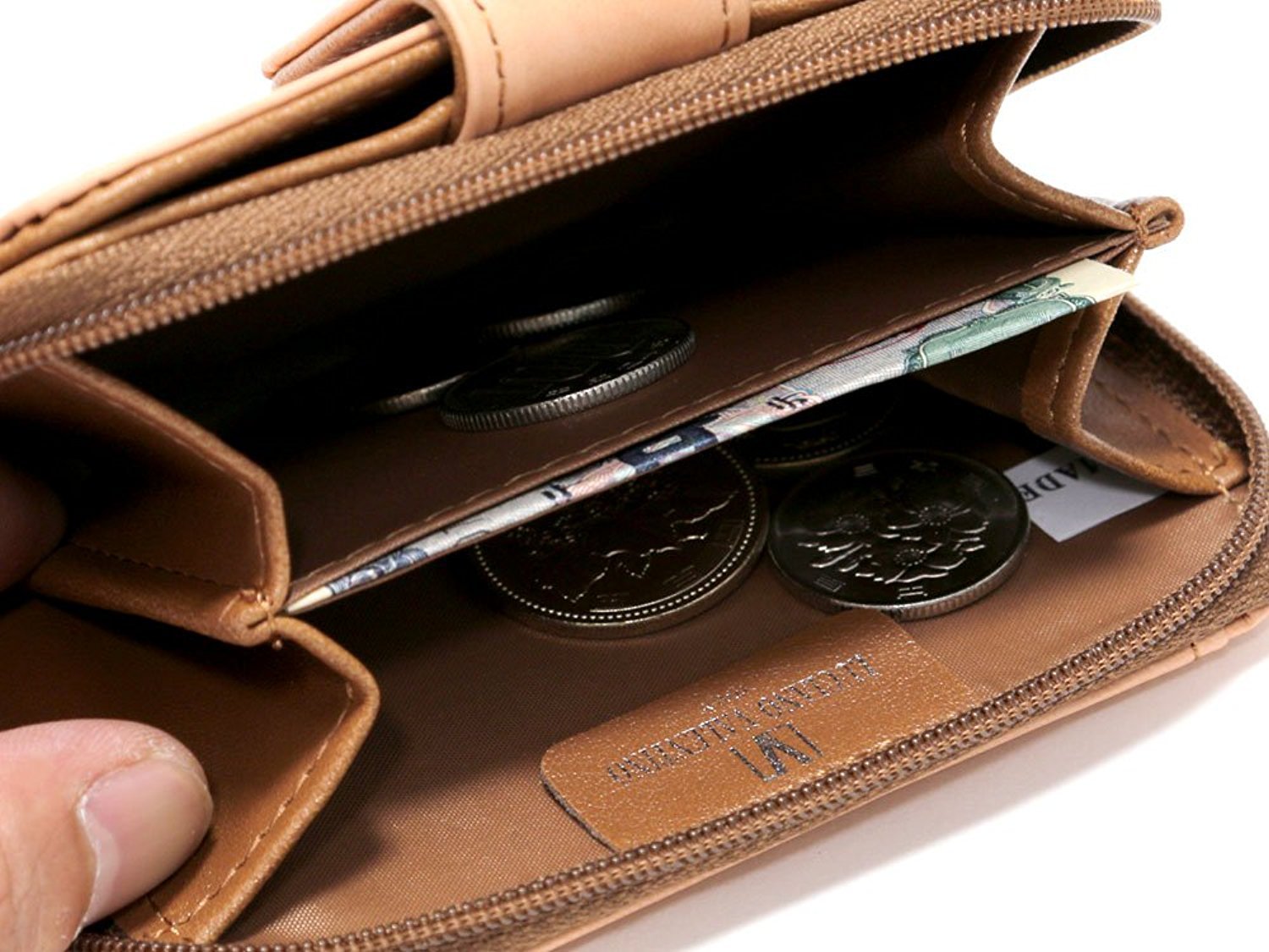 The main storage part was divided into two coin purses, and in the meantime, we prepared a pocket into which bank notes can be folded.