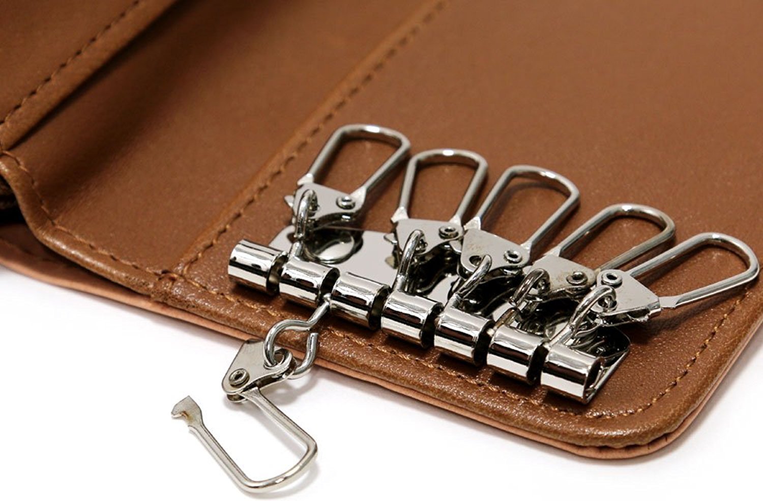 On the back side, there is an IC card and a pass pocket which can be put in regularly, and when opening the flap there is a key ring there.