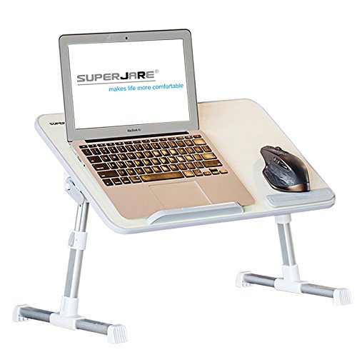Adjustable Laptop Table, Superjare Portable Standing Desk, Notebook Stand Reading Holder For Couch Floor, Bed Tray Table with Foldable Legs - Beige