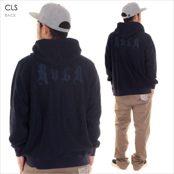 背中にはボディカラーと同色の糸を使用したRVCAロゴをダイナミックに刺繍。