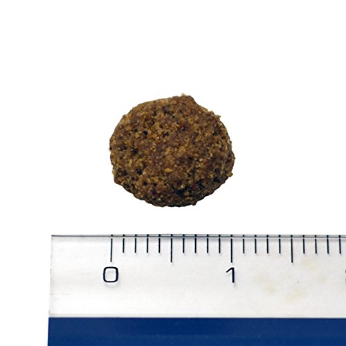 素材構成:粗タンパク質 33.00%以上、粗脂肪 10.50%以上、粗繊維 7.90%以下、粗灰分 7.90%以下、水分 9%以下、カルシウム 1.00%、リン 0.90%、ナトリウム 0.35mg、カリウム 0.70mg、マグネシウム 0.12mg、澱粉 17.50%: 糖分 1.30%、オメガ3脂肪酸 0.35%、オメガ6脂肪酸 2.30%、EPA 1.15%、DHA 0.20% 代謝エネルギー 3210kcal/kg