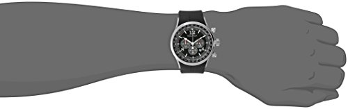 -. Feature : Round watch featuring three textured subdials, date window, and 60-second and tachymeter outer dials / 45 mm stainless steel case with mineral dial window / Japanese quartz movement with analog display / Resin band with buckle closure / Water resistant to 50 m (165 ft)