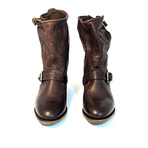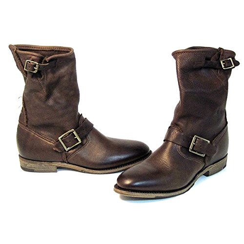 Studio : Vintage Shoe Company Publisher : Vintage Shoe Company Binding : Apparel Product Description Originated from the style worn by ship and train engineers during World War II, this classic round-toed boot is fashioned on a riding boot last with antiqued buckles. Our boot is expertly crafted to fit the contours and proportions of the female foot. Cushioned leather insole Goodyear welt construction Made in the USA Sizes 6M-10M 0