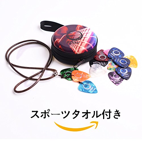 -. Feature : 16枚のセルロイドのピック-クラシックな形、12種の綺麗なパターン ピック形状 ——ティアドロップ。ピックには数種の厚み、形状、素材があり、演奏する音楽や楽器などによって相性が異なってくると言えます。 ピック入れとギターピックネックレスが付き、嬉しいセットです。 / カラフルで、16枚セット、それぞれ厚さがあります。 THIN(シン)/SOFT(ソフト)0.46mm位 MIDIUM(ミディアム)0.71mm位 HARD(ハード)/HEAVY(ヘヴィー)0.96mm位 Extra Heavy(エクストラ・エクストラ)1.2mm位 色んな厚みのピックが入っていて、初心者が自分に合ったピックがどんなのか探りやすいです。 / 心を込めるデザイン: 穴を開けるギターピックがあり、ネックレスすることが出来ます。ファスナーカバー付、便利に使えます。 ストラップ付、持ちやすいです。プラスチッククッション付、ギターピックをキープします。 / ギターピックネックレス付き ギターピックをモチーフ出来るネックレスです。男女いづれにもOKなクローバー柄デザインです♪ / ギターやベースを弾く上で、まずは自分にあったピックを見つけることが大切です。最初のきっかけとして、好きなミュージシャンが使用しているピックや、ミュージシャンモデルを使ったりするもの良いでしょう。得られるサウンド、感触、持ちやすさなど、さまざまな条件がありますが、とにかく弾きやすいな、と思えるものをまずはチョイスするのが一番ではないでしょうか。また、気分次第でピックの種類を変えてみると、出てくるフレーズがいつもと違ってきたりします。是非とも様々なタイプのピックを試してみてください。