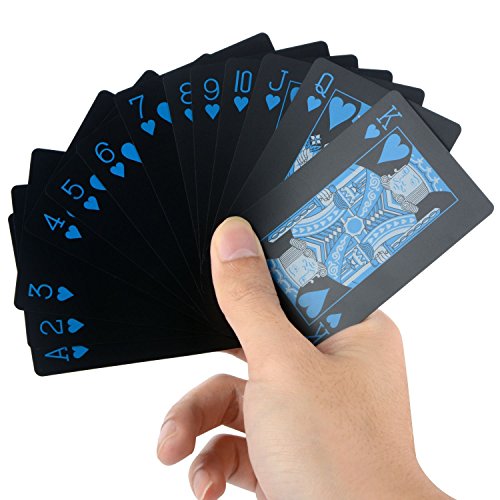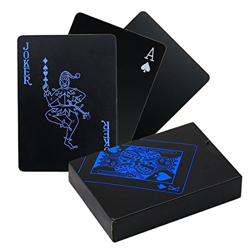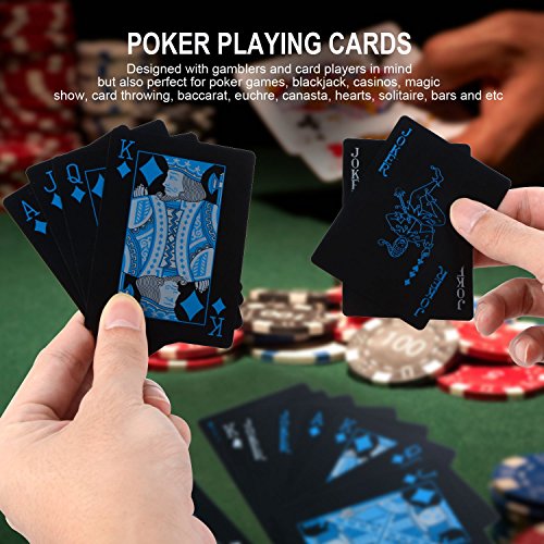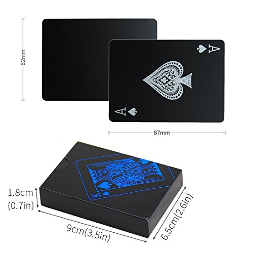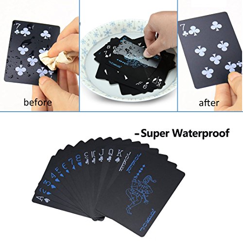 Waterproof PVC Playing Cards Set, Black Poker Table Cards Classic Magic Tricks Tool, Deck (54pcs)